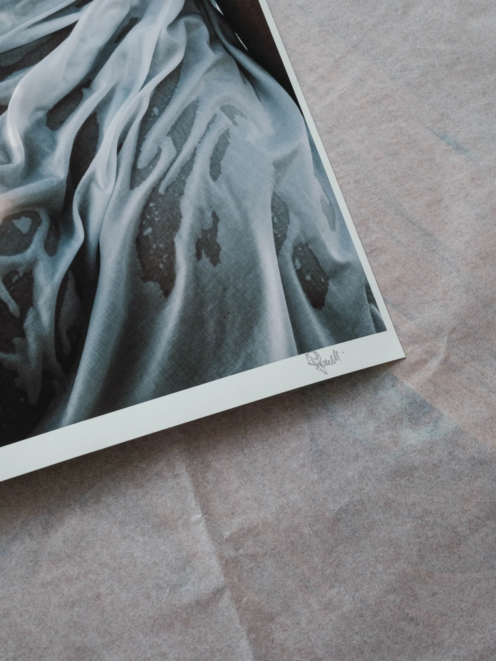 Material: Printed on Canson Infinity Rag Photographique, which is a 100% cotton museum-grade white Fine Art and photo paper. The exceptionally smooth white tone is achieved during manufacturing by introducing natural minerals to the process. It has been developed to address the need for continued longevity requirements in the Digital Fine Art market.